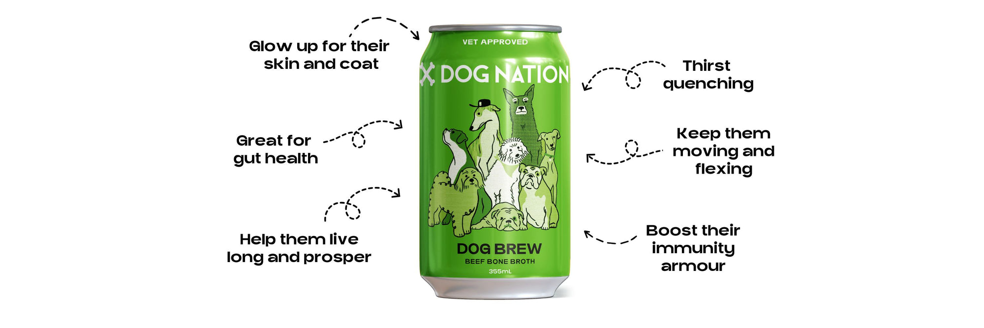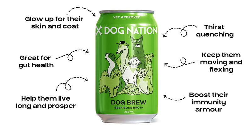 Crafted with your pup’s health in mind, they’re an easy way to care for your best mate while sharing a cold one. Pour it over their food or crack open a can at the park—our drinks fit seamlessly into your dog’s routine, no fuss needed.